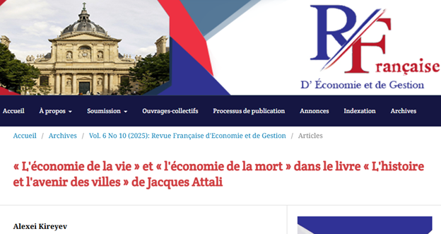 « L'économie de la vie » et « l'économie de la mort » dans le livre « L'histoire et l'avenir des villes » de Jacques Attali
